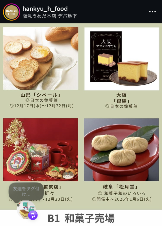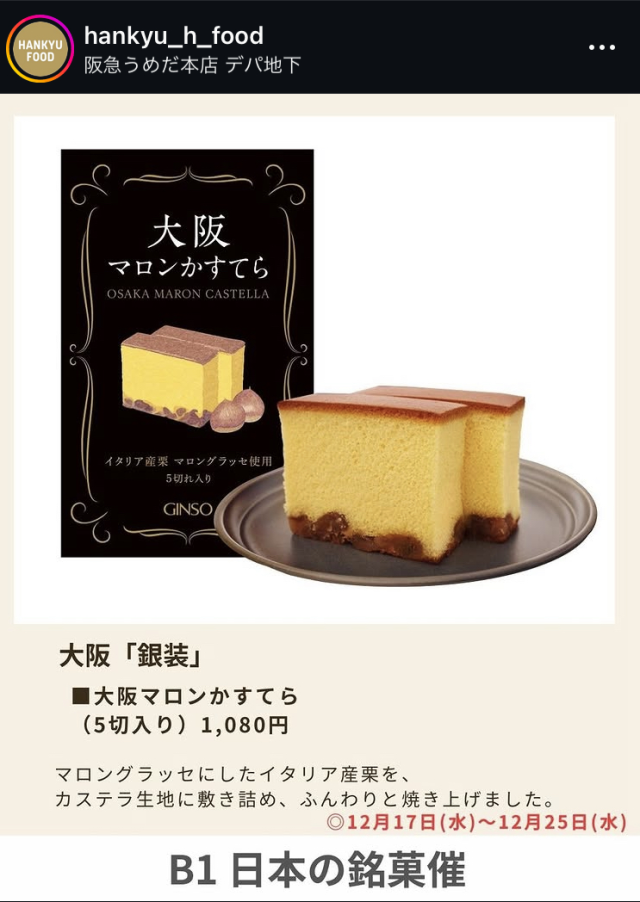 阪急百貨店うめだ本店での催事販売は12月25日(木)まで実施する予定です。