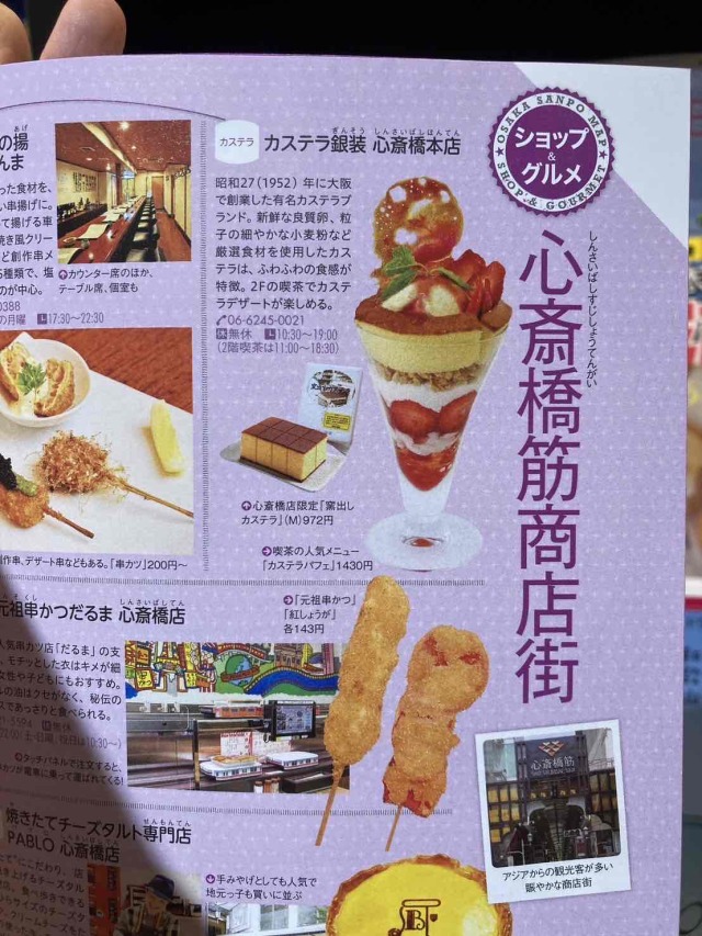 加えて現在、本店2階でご提供している「カステラパフェ」は、なんと「まっぷる大阪」の裏表紙にも掲載されるまでの知名度と認知度となり、たくさんの観光客、外国人旅行客の方々にお召し上がり頂いております。