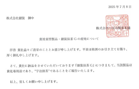 2001年時に当社の抹茶カステラが発売された時、まだまだインバウンド需要や抹茶ブームも現在までのレベルに無く、「宇治抹茶」を商品名に入れる必要性はそれほどありませんでした。