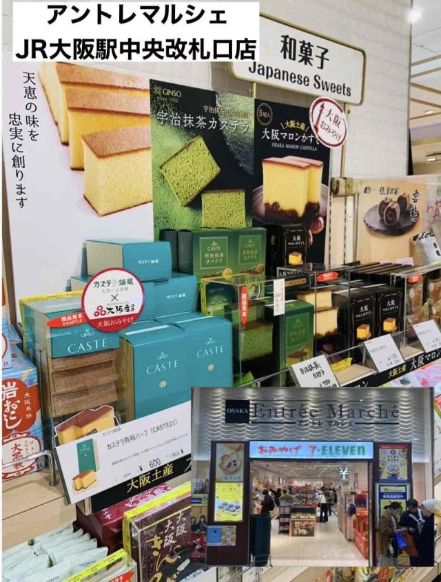 JR大阪駅中央改札口を出てすぐ向かいにあるセブンイレブン併設のお土産物売り場「関西味浪漫」内にあります。